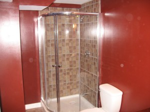 Stand up Glass shower with tiles and toilet